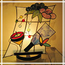 ショップで販売されている作品の一部を紹介します。いずれも一点ものですので売り切れている場合もございます。ランプ・窓用パネル・季節の小物など注文制作もお受けしていますのでどうぞお気軽にご相談ください。