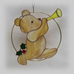 今年は点滅球とグリーンのガラスがかわいい「ツリー型ランプ」(3回講習)とかわいい「X’masクマのオーナメント」(1回講習)です。