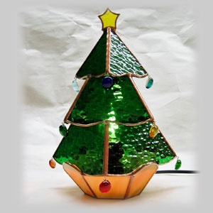今回は点滅球とグリーンのガラスがかわいい「ツリー型ランプ」(3回講習)とブルーのガラスが清楚なイメージの「天使のミニパネル」(1回講習)です。